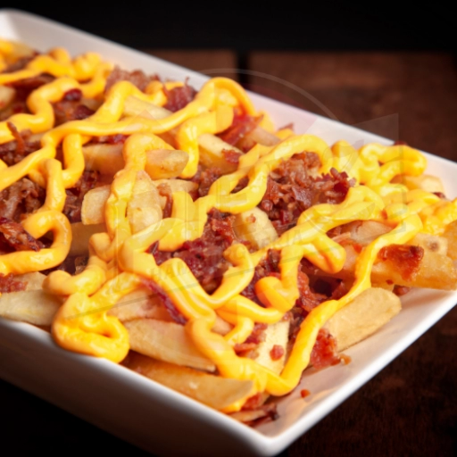 500g Batatas fritas sequinhas coberta com cheddar melt e bacon crocante em cubos.