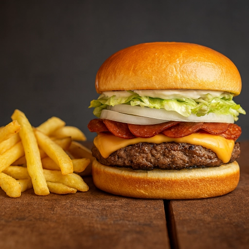 Um hambúrguer carne bovina, queijo cheddar derretido, muitas fatias de pepperoni, maionese, alface americana, cebola, ... Ver completo