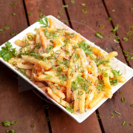 500g de Batata frita sequinhas coberta com queijo mussarela ralado e coberto com cebolinha verde.